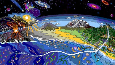 This illustration represents the natural phenomena which have created life as we know it on Earth. Source: California Space Institute