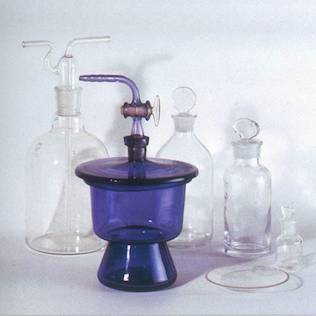 Above: radium radiation gives a blue tint to a glass recipient from Pierre and Marie Curie‘s laboratory. Image courtesy of C. Delhaye (CNRS Photothèque).