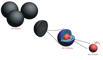 A particularly interesting project involves a high-temperature gas-cooled reactor with a core made up of 330000 spherical fuel elements, 60mm in diameter, each one composed of about 15000 grains of UO2.