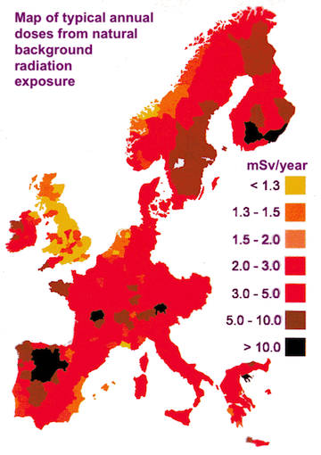 The map on below shows background radiation levels across some of Western Europe (image credits: World Nuclear Association).